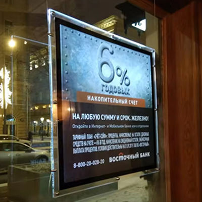ওয়াল মাউন্ট উইন্ডো ডিসপ্লে নেতৃত্বাধীন আলো ছবির ফ্রেম আয়তক্ষেত্রাকার ক্রিস্টাল হালকা বাক্স